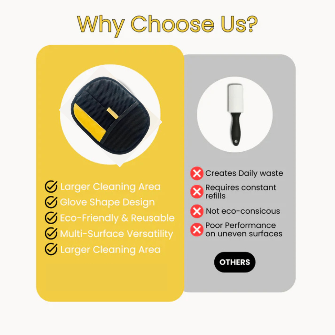 Keep your home clean and fur-free with the Pet Hair Remover Glove™. This reusable glove makes removing pet hair from couches, clothing, bedding, and car seats fast and easy. Its soft, flexible design fits comfortably on your hand while staying gentle on fabrics. Perfect for both dogs and cats, it saves time and money compared to disposable lint rollers.